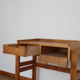 Coup de coeur pour ce bureau / console vintage ! On aime beaucoup son volume massif et aérien à la fois, ainsi son petit format : c'est une pièce unique qui peut trouver sa place dans les intérieurs de toute taille. A utiliser comme bureau d'appoint ou comme console, au choix.