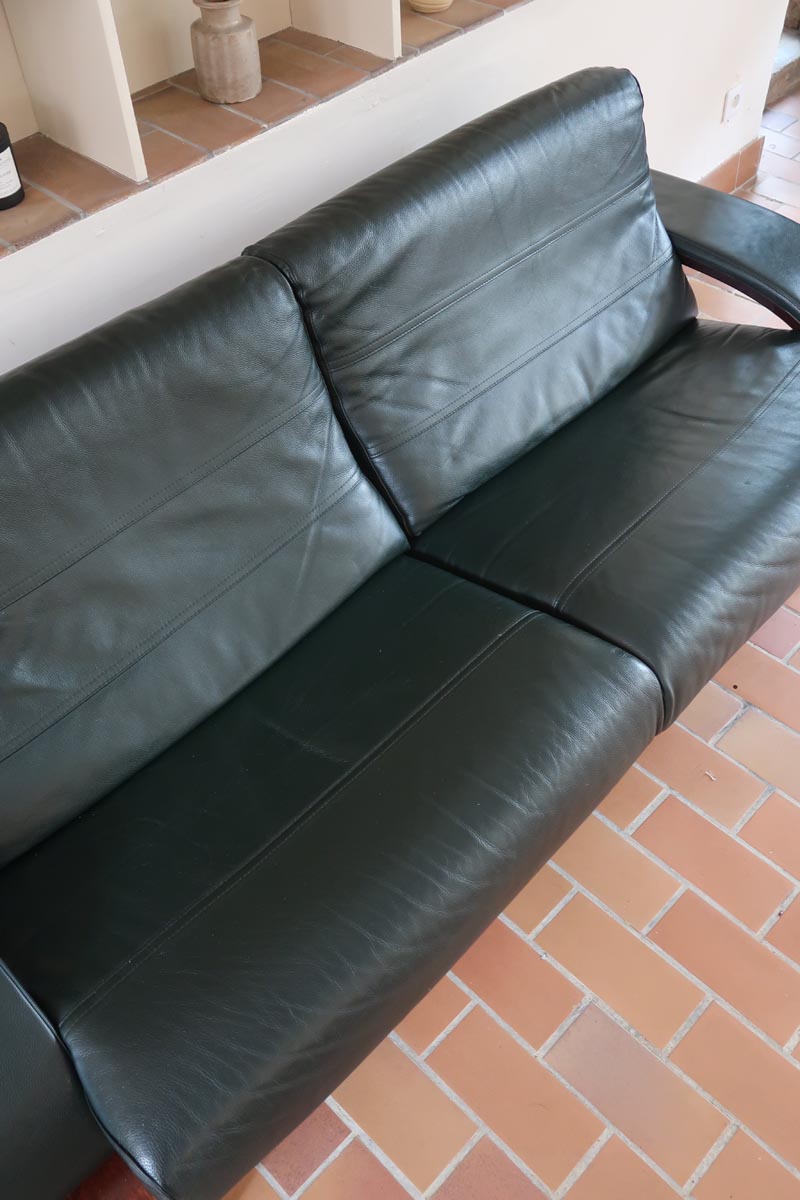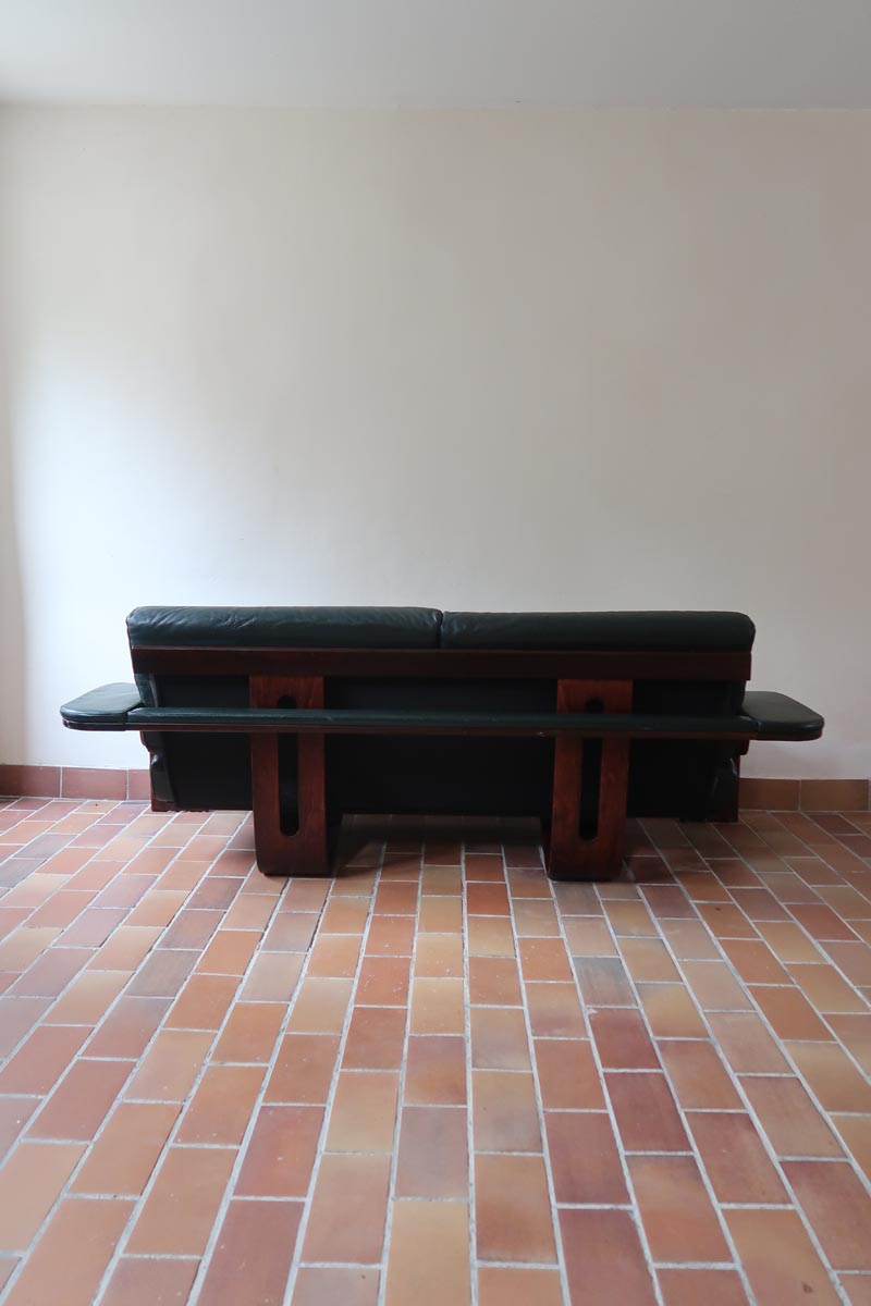 Pièce rare et recherchée, ce canapé conjugue élégance brute et robustesse, avec un charme intemporel qui traverse les décennies. Le cuir présente une belle patine et quelques traces discrètes liées à l’usage, tandis que la structure en bois est parfaitement stable. Un canapé vintage signé, idéal pour amateurs de design scandinave :)