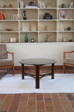 En bon état vintage, ce fauteuil présente une structure stable et solide, avec un tissu préservé et une belle patine du bois. Quelques marques d’usage peuvent apparaître, mais sans nuire ni au confort ni au charme d’origine. Une assise élégante et chaleureuse, parfaite dans un salon, une bibliothèque ou un coin lecture.