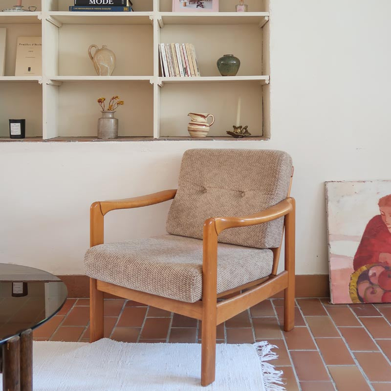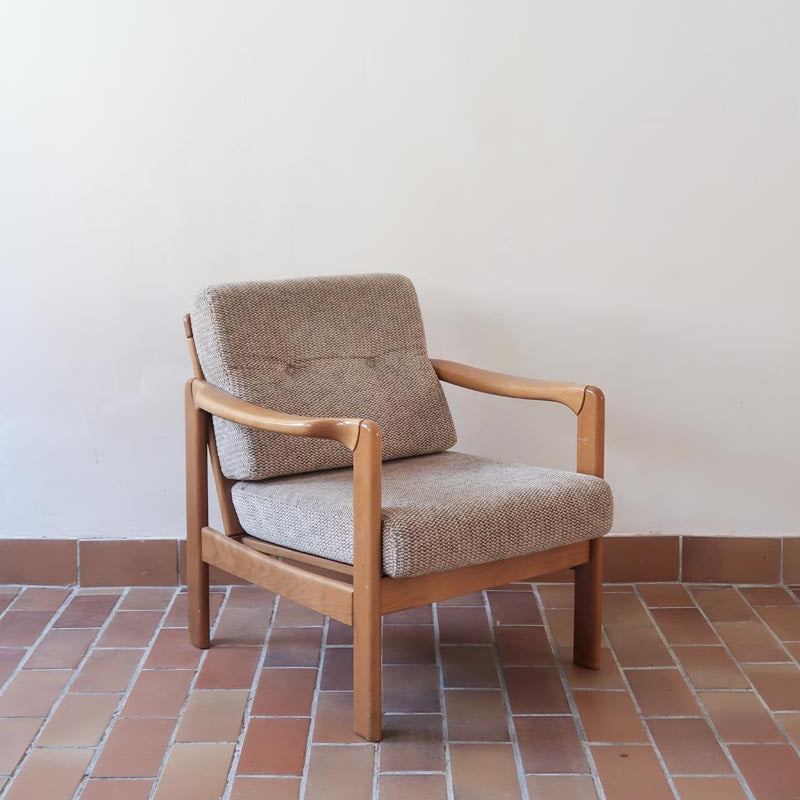 Fauteuil scandinave moderniste en bois massif – années 50/60