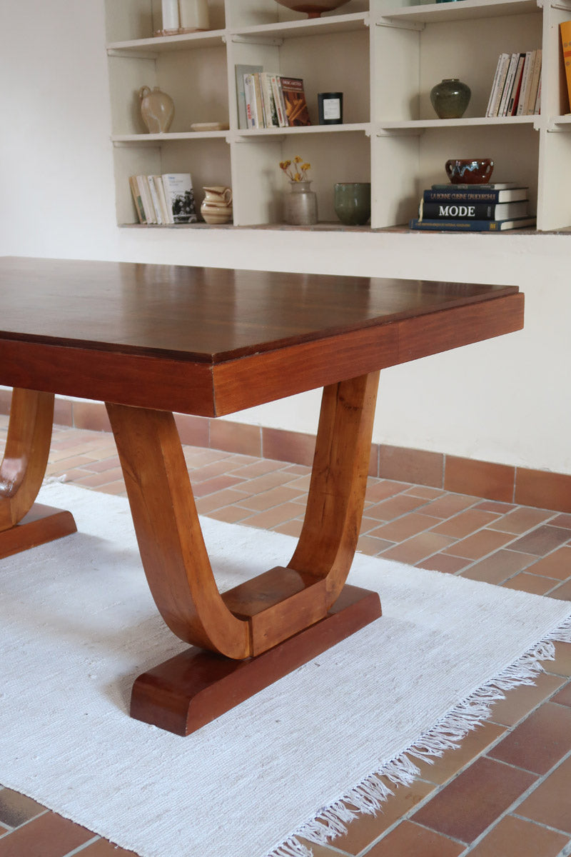 Rupture de stockTable Art déco en noyer – piétement architectural, années 40