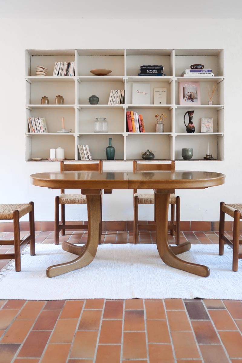La table n'a plus de rallonge mais elle est capable d’accueillir confortablement 6 à 8 convives, elle s’intègre aussi bien dans un intérieur contemporain que dans une décoration plus authentique.
