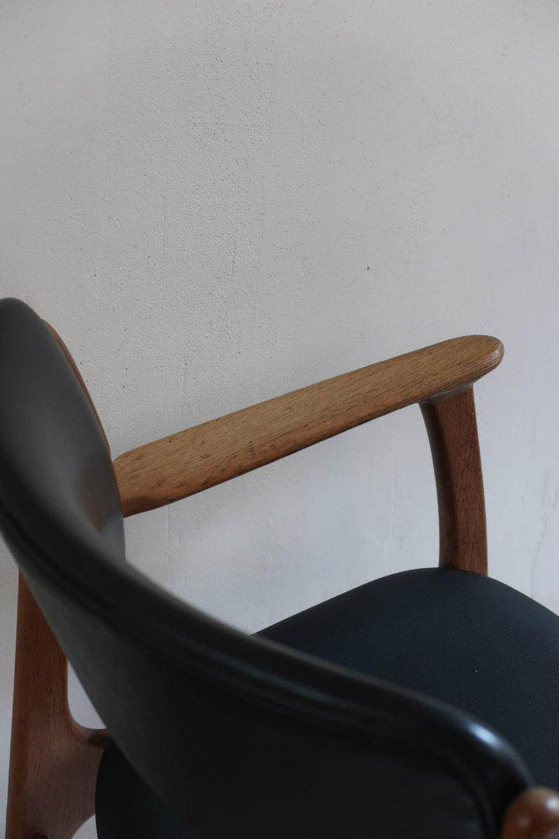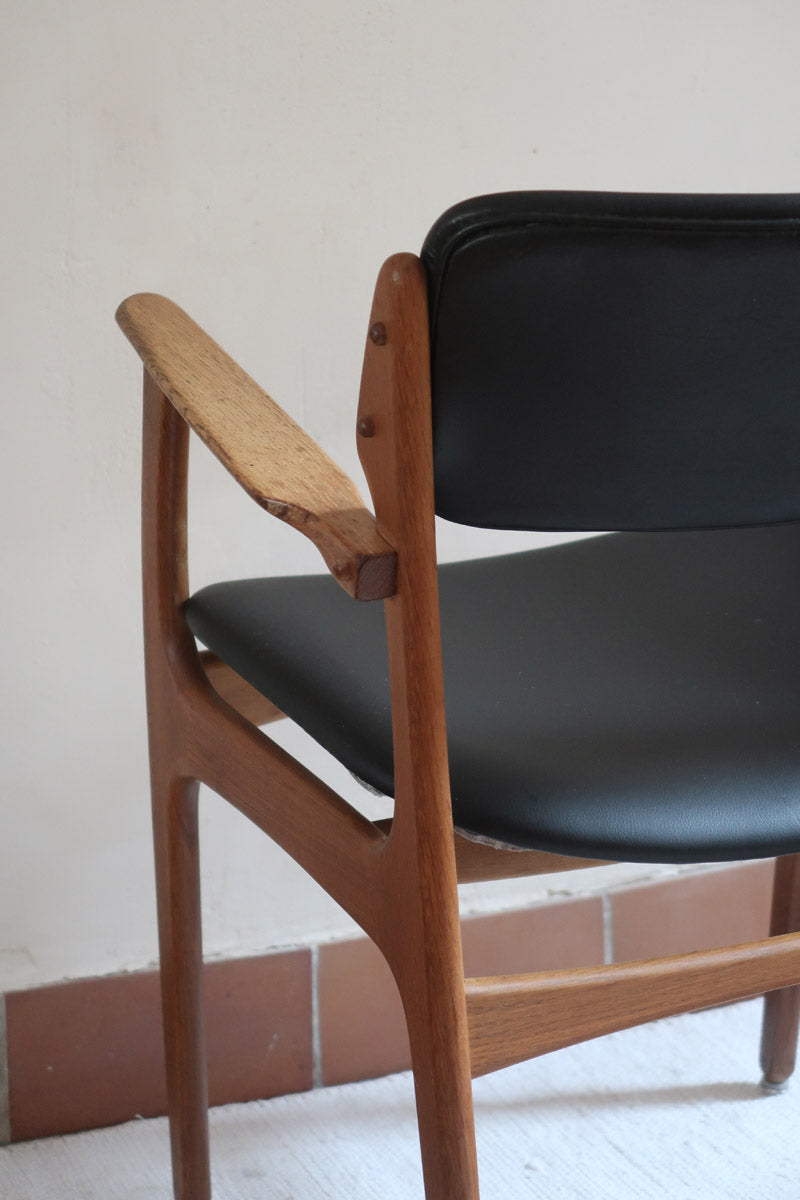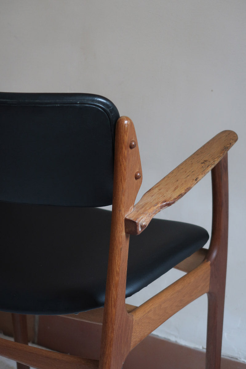 Fauteuil Erik Buch teck skaï noir – O.D. Møbler, Danemark, années 60